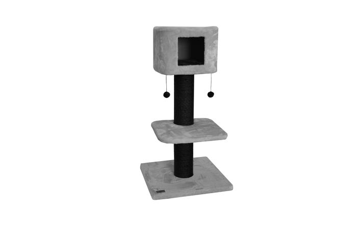 Description:Product Dimensions: 60cm x 60cm x 115cm. Sturdy solid construction. Easy to assemble. Quality plush coverings. Durable sisal post for scratching. Reinforced base to ensure stability. Modern grey & black colours.