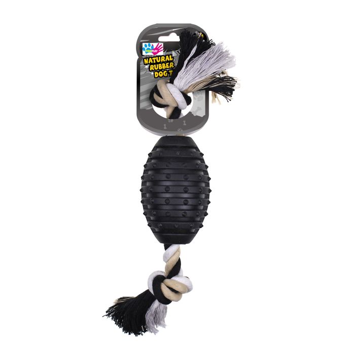 Paw Play Rubber Rugby w/Rope 25cm